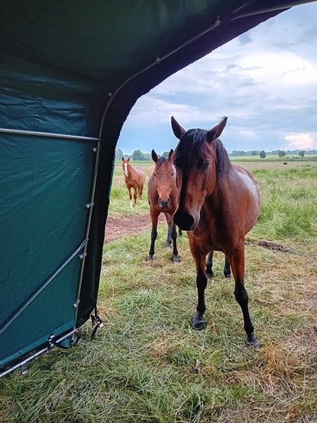 • Im Sommer, bei milden Temperaturen und trockenem Wetter, sind alle Pferde 24/7 draußen. Sollten sich einige Pferde in der Nacht draußen nicht wohl fühlen, weil sie dieses eventuell nicht kennen, holen wir diese Nachts gerne rein.